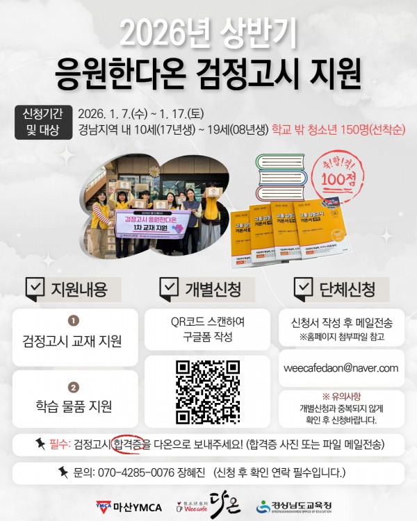 - 다음글2025년 하반기 응원한다온(검정고시 학력 취득 지원) 사업 신청 안내 25.05.02